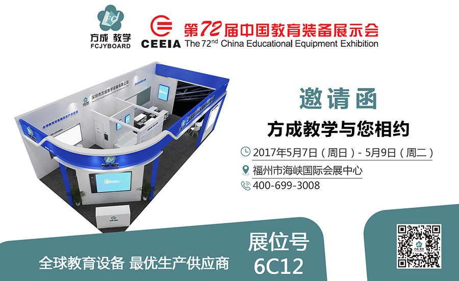 又是一年春意盎然,又是一次久別重逢,2017年5月7日至9日我們在福州市海峽國際會展中心迎來了第72屆中國教育裝備展示會,在這個(gè)廣闊的平臺上,方成教學(xué)主力推出新產(chǎn)品亮相于6號館C12,我們將熱忱恭候你的光臨!